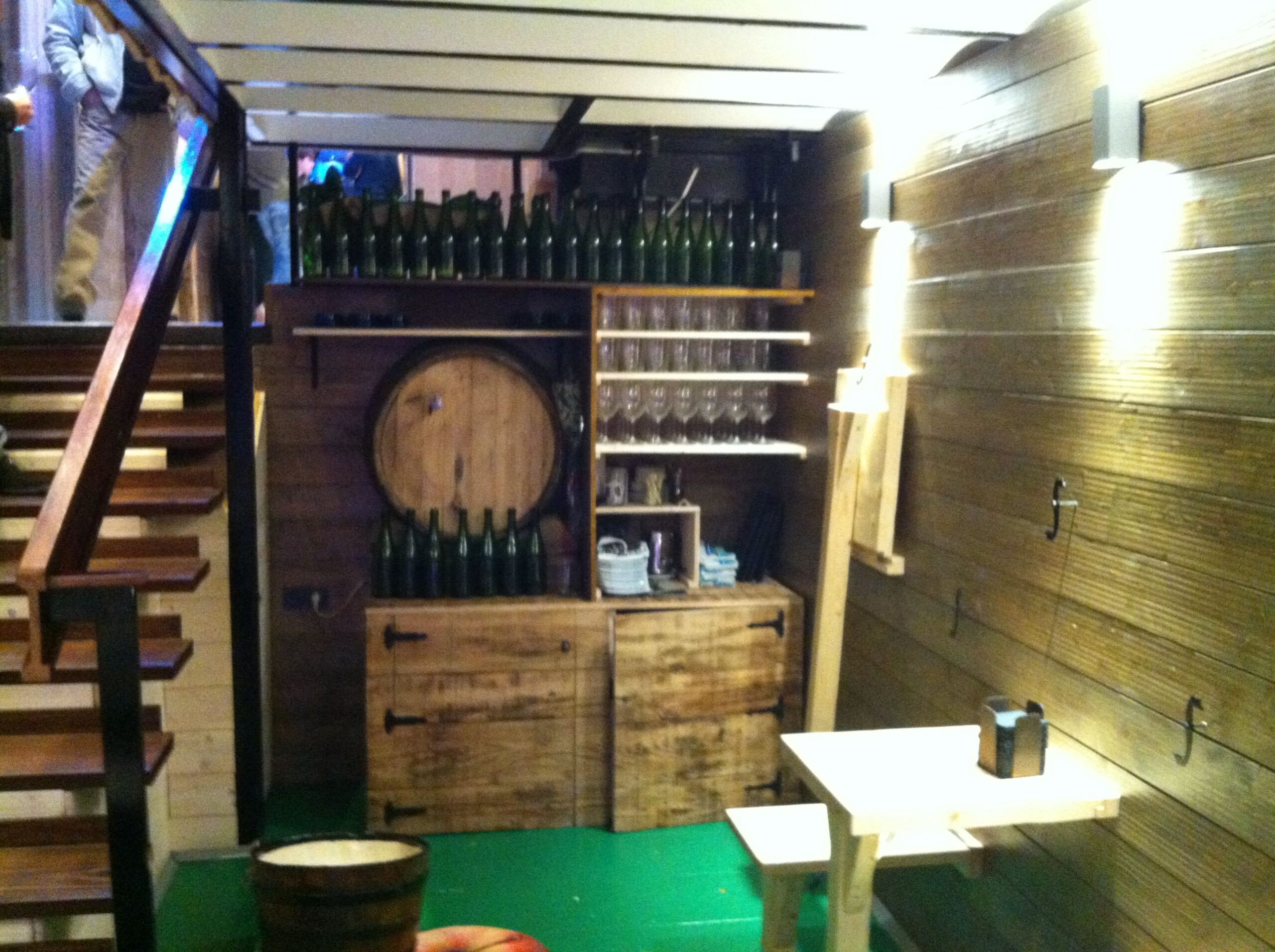 El bar, de los mismos dueños del Bar Atari, cuenta en el fondo del local con un pequeño restaurante de unas pocas mesas en un altillo, mientras que debajo de ese comedor hay una especie de sidrería en miniatura muy bien decorada que hace del sitio un choco irresistible para organizar una buena cena en grupo. Como decimos, son 2 espacios muy pequeños pero que hacen muy bien su función.